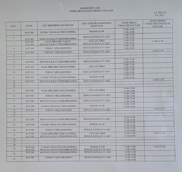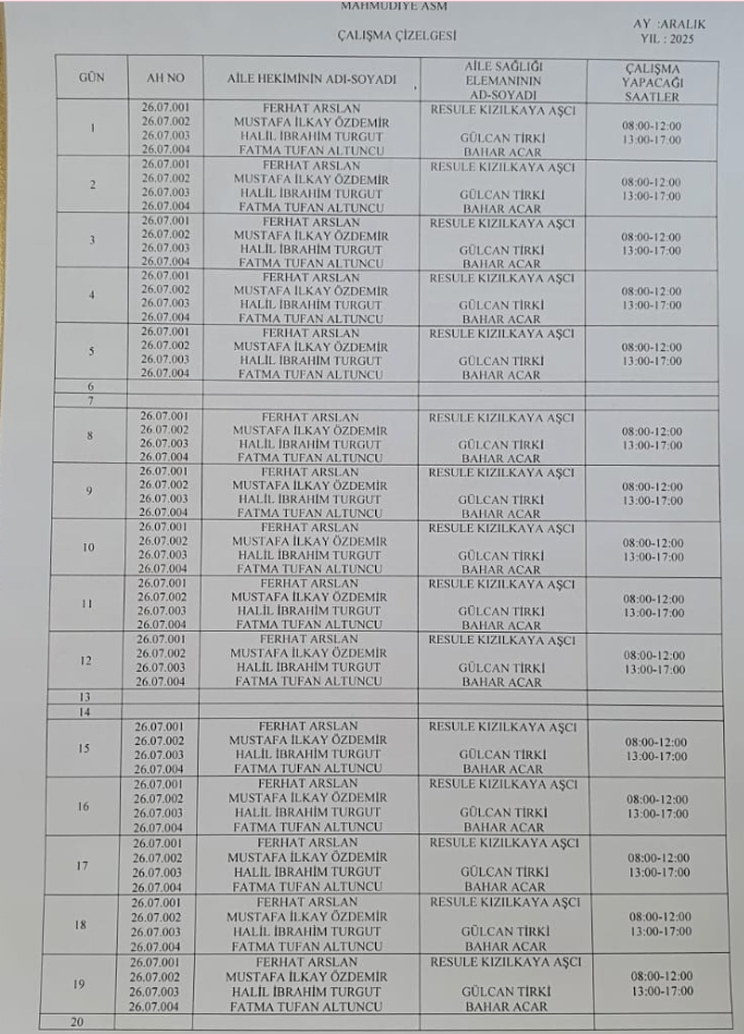 Aile Sağlığı Elemanlarımız